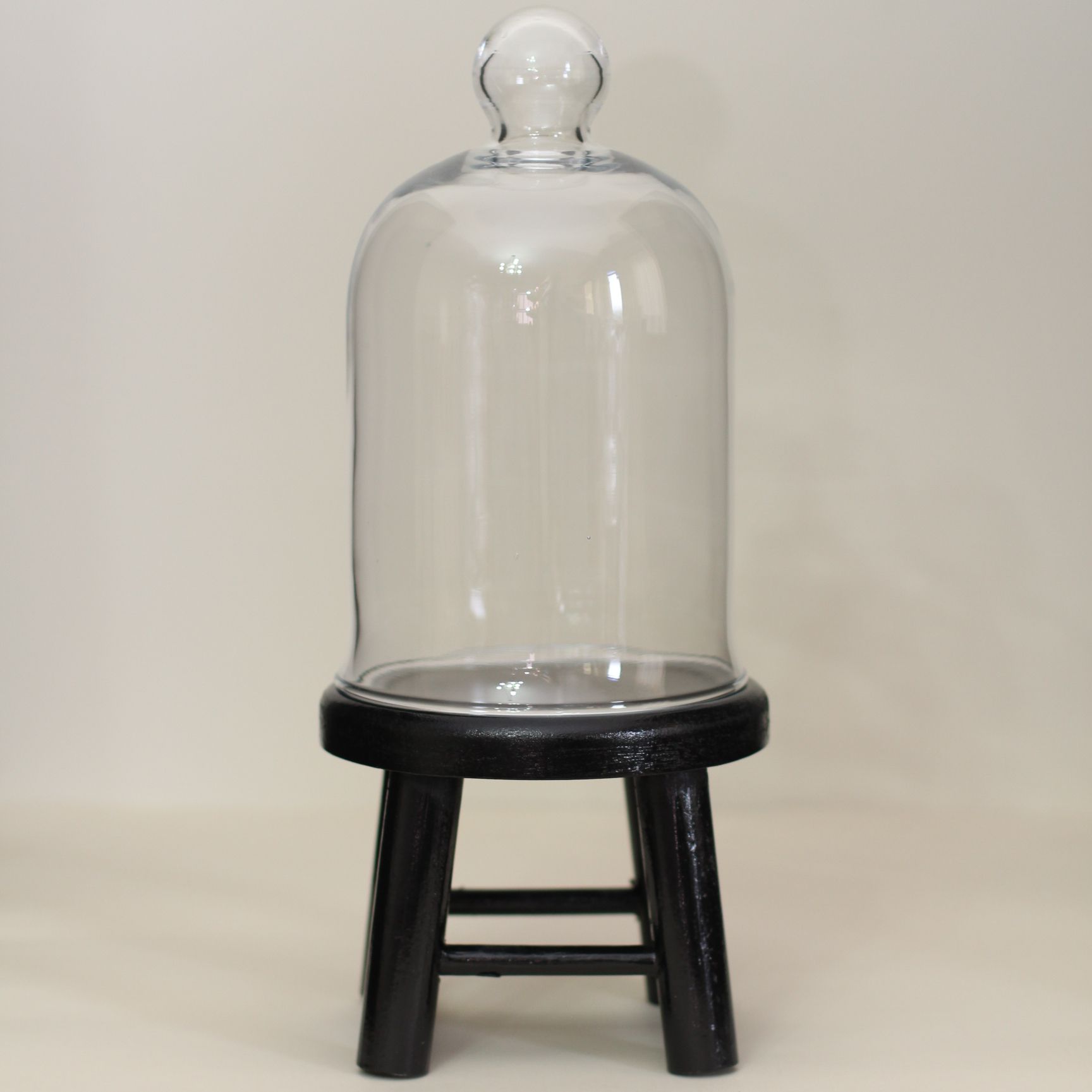Banquinho de madeira e MDF pintado na cor pink acompanhado de uma redoma de vidro P.